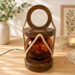 Rozměry: 37 x 22 cm (v x š) Materiál: dřevo, skloj Světelný zdroj elektrický Ruční práce Barva: hnědá Styl rustikální...