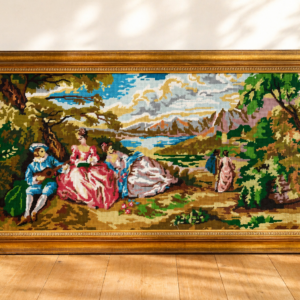 Rozměry 110 x 61 cm Gobelín Dřevěný zlatý rám Použité spotřební zboží Ruční práce