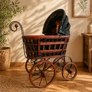 Poslední částí naší prezentace jsou dekorativní předměty, jako jsou staré kolovraty, dětské kočárky pro panenky a vánoční betlémy.