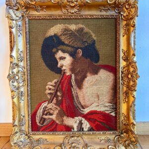 Starý obraz gobelín v masivním zdobeném rámu