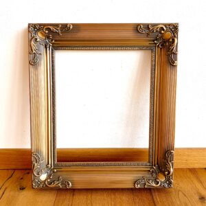 Rozměry: 57 x 47 cm a vnitřní rozměry 44 x 34 cm Dřevěný zdobený rám Barva: zlatá Použité spotřební...